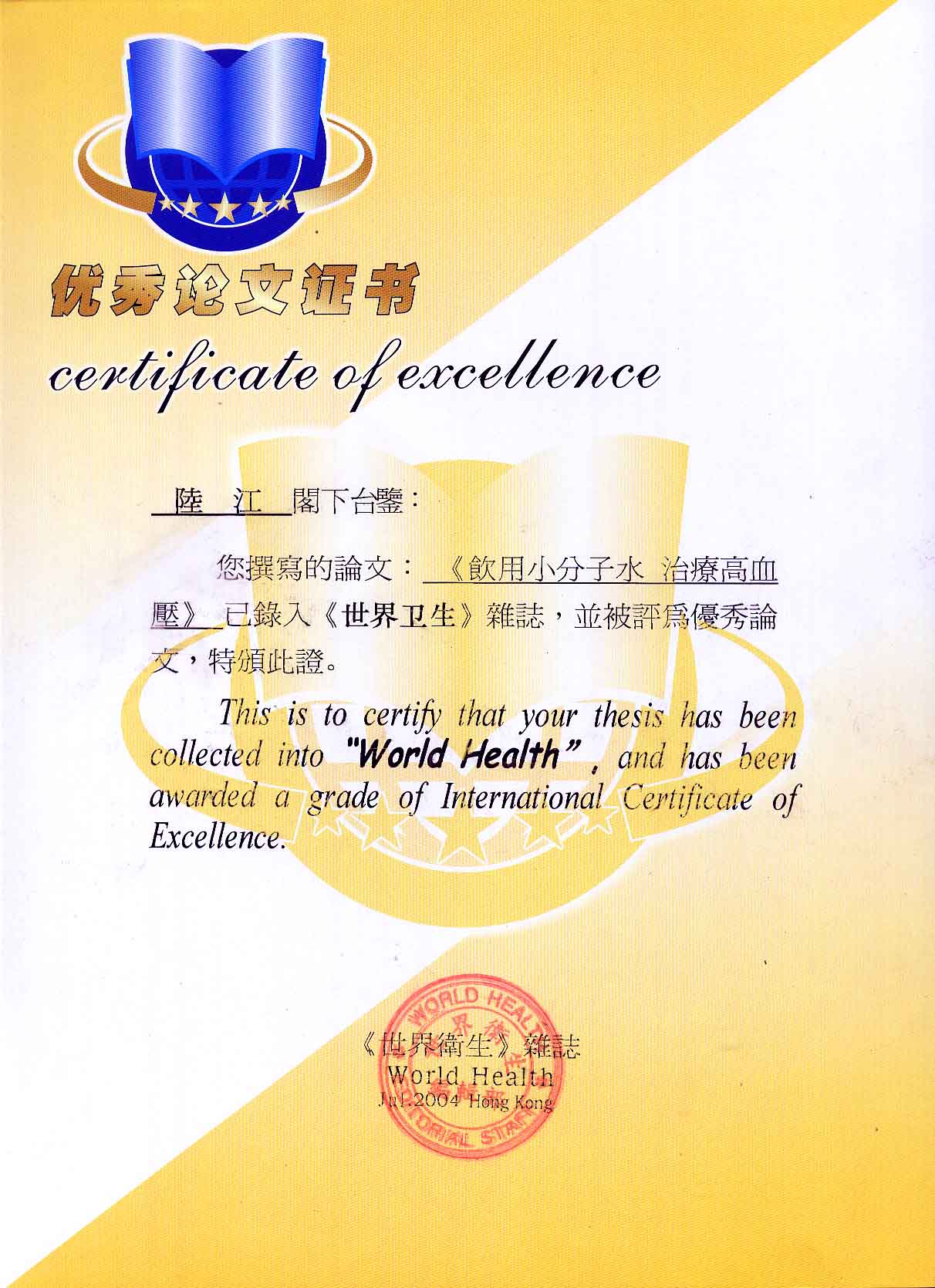-----我是從事建筑的高工,本來沒有資格去攻克醫(yī)學難題,卻為了自身健康才扣響醫(yī)學的大門。由于我1990年患高血壓,因怕中風才研究發(fā)明了離子水瓶,我把水處理成微小分子團水,飲用后治愈了高血壓。便于1993年底送到三家省級醫(yī)院做臨床試用4個月。經(jīng)北京和廣西醫(yī)學專家鑒定:"降脂降壓效果好"," 能擴大心腦動脈流量,改善心腦電圖以及微循環(huán)","對治療心腦動脈粥樣硬化、高血壓、高血脂有良好的醫(yī)療保健作用。""產(chǎn)品的技術(shù)性能和療效達到了同類產(chǎn)品的國內(nèi)領先水平,經(jīng)廣西醫(yī)學科學情報研究所檢索,未見國外有類似報道。"中國醫(yī)學科學院張正國教授從美國國立醫(yī)學圖書館數(shù)據(jù)庫存Medline檢索英俄文資料,均未見類似報告。2000年上市后,我為了對消費者負責而繼續(xù)觀察研究,一直通過《信譽卡》和《質(zhì)量跟蹤調(diào)查書》向患者承諾療效,請用戶使用6個月后反饋效果。和脂壓患者飲用2至5個月內(nèi),消除癥狀,停服藥物,血壓正常;冠心病患者飲用3~5個月逐漸減輕至消除心絞痛、房顫等癥狀,不再服藥,飲用1年左右心電圖正常,經(jīng)冠脈造影掃描無明顯狹窄,表明冠心病痊愈。大量患者還反映許多衰弱器官被修復,讓前列腺增生、慢性咽喉炎、慢性氣管炎、支氣管炎、慢性胃炎、腸炎和膽囊炎等不藥而愈;2型糖尿病患者是因為胰島衰弱致病,飲用該水半年至一年,逐漸減藥至停藥,血糖尿糖正常,真正治愈2型糖尿病。中風后遺癥患者飲用六七個月,可逐漸減輕至消除肢體和語言障礙,表明飲用該水能讓壽命很長的神經(jīng)元細胞逐漸修復,奇跡般地恢復肢體和語言功能。飲用后還使胸腺和脾臟兩個重要的免疫器官被修復和增強,產(chǎn)生免疫細胞多,提高了免疫力,使人不生病或少生病。自此, 飲用微小分子團水創(chuàng)造了攻克冠心病、高(低)血壓和糖尿病三大醫(yī)學難題的奇跡。人們對此感到不可思議,但實踐是檢驗真理的唯一標準。