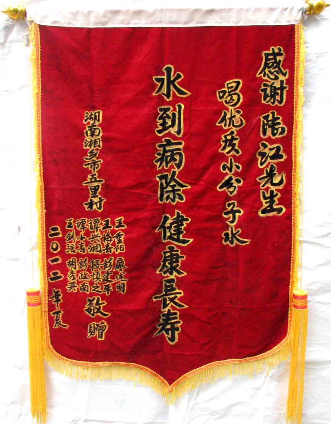新疆63歲的賀兆生飲用一年,冠心病未愈,他用電話介紹是食堂管理員,問他食量多少?說吃七八分飽,睡前還吃兩袋牛奶,陸 江說我在論文和書中多次批判“吃七八分飽”,關照患者務必用“己饑方食”控制主食肉食量,要他把牛奶改在早中餐吃,減少主食肉食量,建議不吃晩餐,晚上只吃一個蘋果,再經(jīng)幾個月補水節(jié)食,治愈了21年的冠心病和肥胖、失眠等病,信中由衷地感激陸 江為再生父母。[13]因為醫(yī)生從未過問他的膳食習慣,只管開處方藥或手術(shù),父母也不會叫他不吃晩飯。